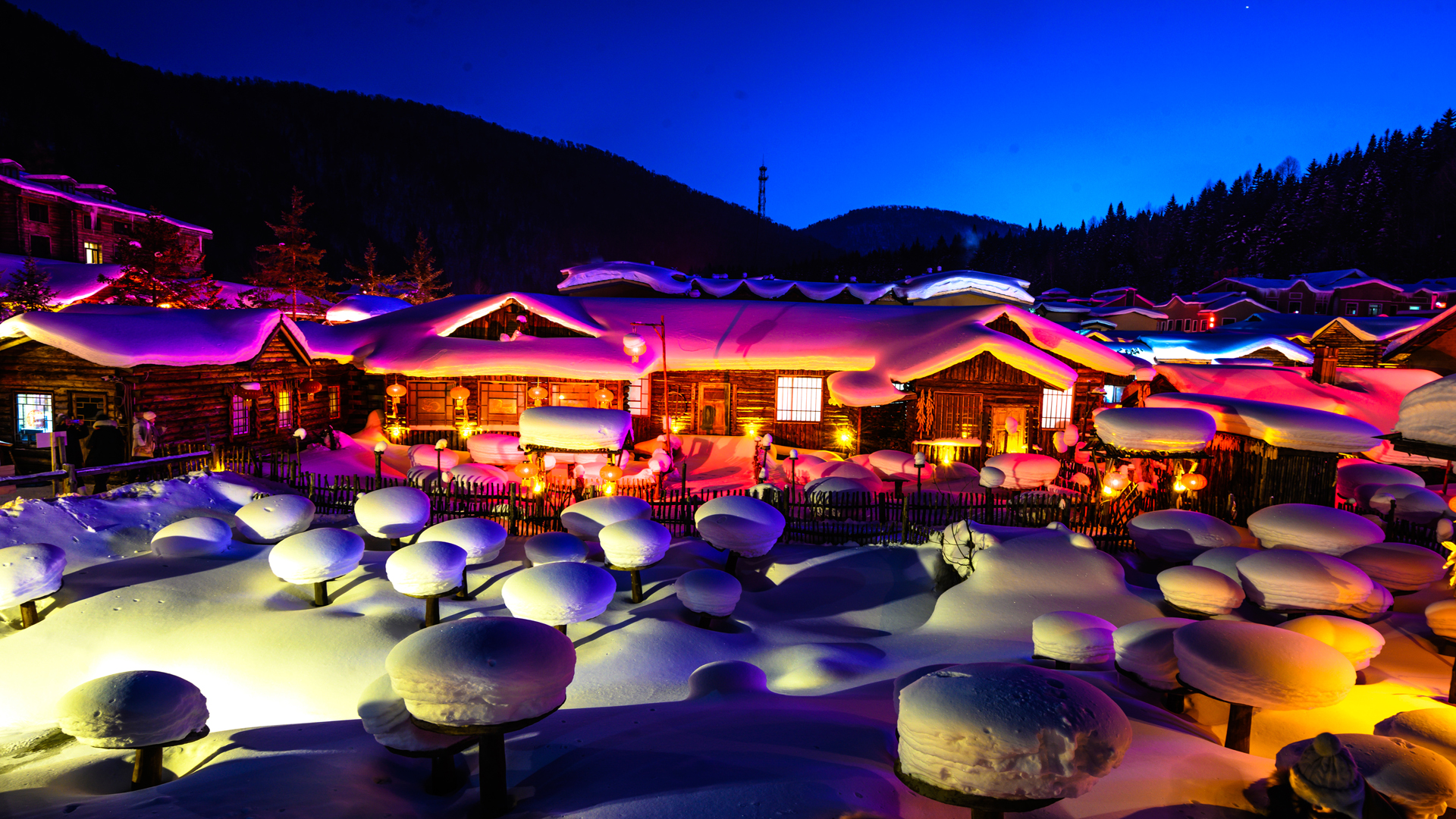 Night Scene In Snow Town